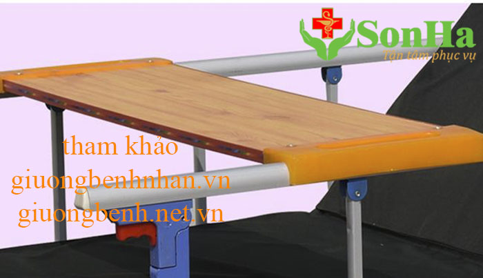 - Lan can giường có thể nâng lên và thu gọn lại để cho bệnh nhân lên xuống.