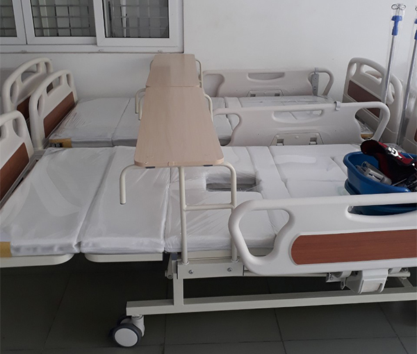 - 1 cây truyền dịch, 1 bô vệ sinh, 1 chậu gội đầu, 1 nệm xơ dừa, 1 bàn ăn. - Remote điều khiển. - 4 bánh xe nhựa cao cấp(12.5cm) có khóa - Thành giường 2 bên bằng hợp kim nhôm - Khung và mặt giường bằng thép chắc chắn. |