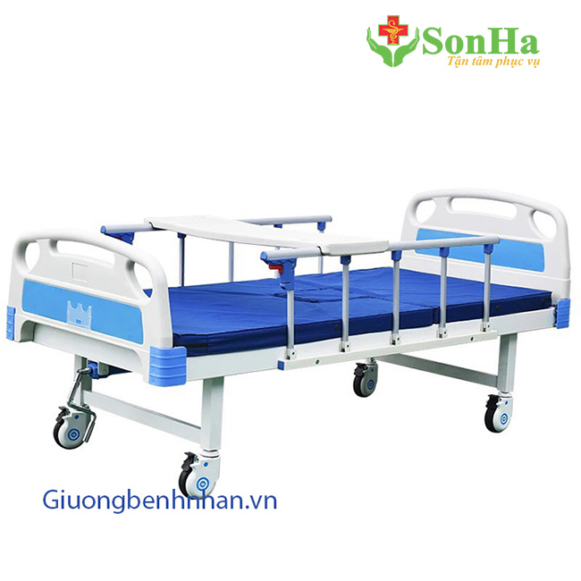 - 1 cây truyền dịch - Hệ thống 1 tay quay. - 4 bánh xe nhựa cao cấp (12.5cm) có khóa - Thành giường 2 bên bằng hợp kim nhôm - khung và mặt giường bằng thép. |