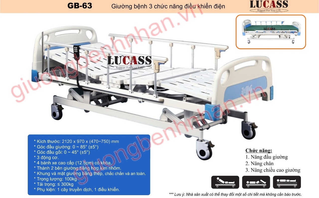 Giường y tế 3 chức năng Lucass GB-63 chính hãng, ✔️Giường y tế 3 chức năng Lucass GB-63 nhập khẩu giá rẻ, ✔️Cam kết hàng chính hãng, nhập khẩu giao hàng tận nơi.