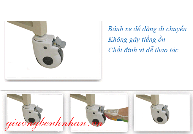Có bánh xe dễ dàng di chuyển, đẩy bệnh nhân