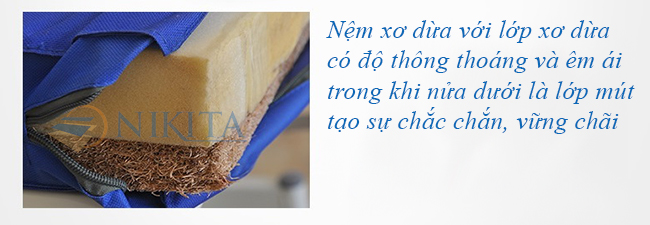 - Đệm 2 lớp xơ dừa thoáng khi và bông ép tăng độ êm